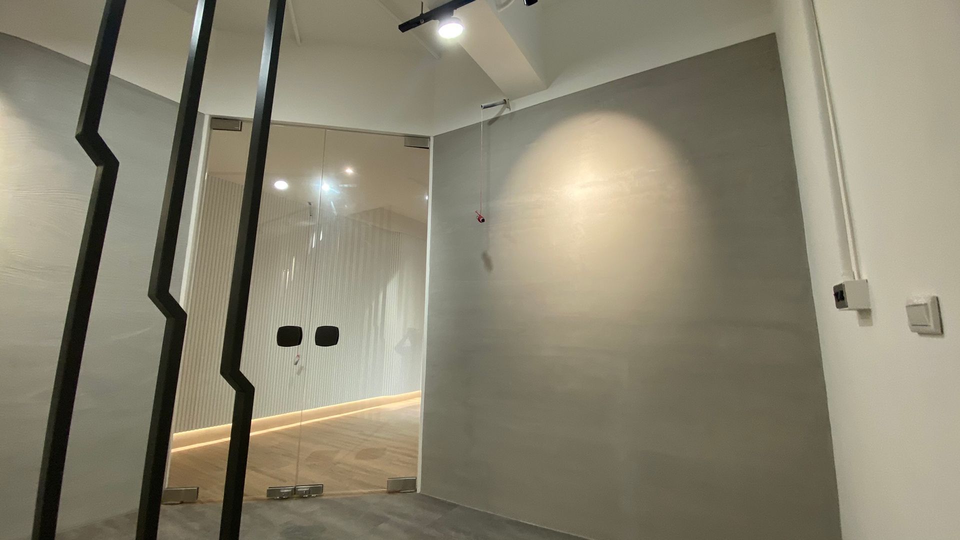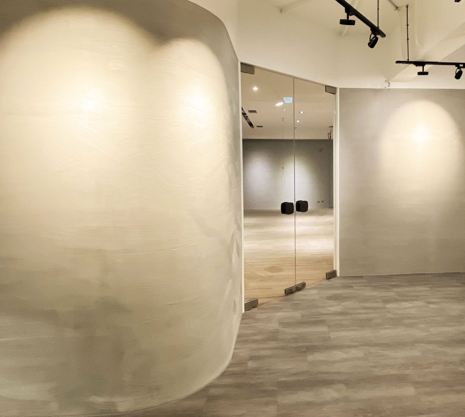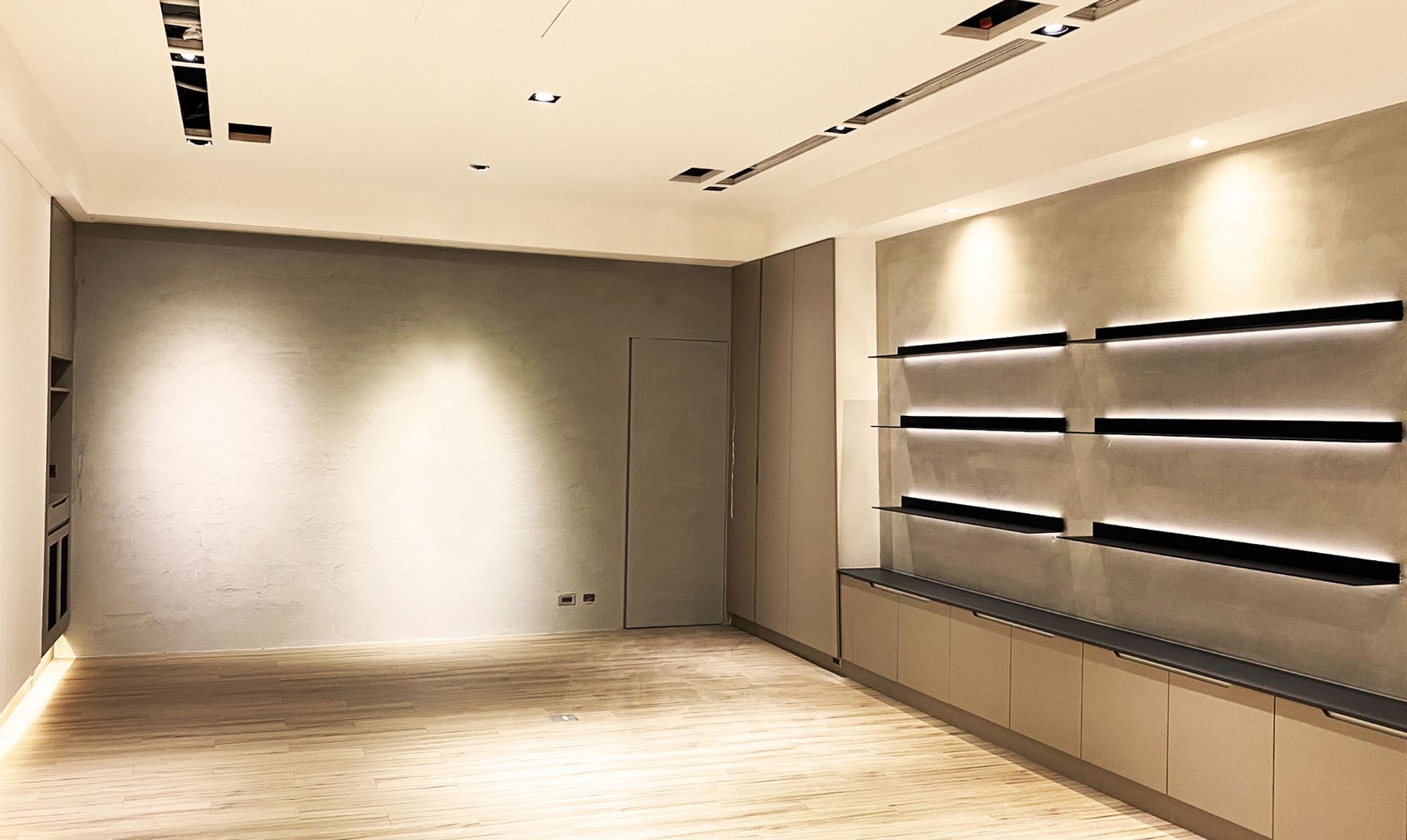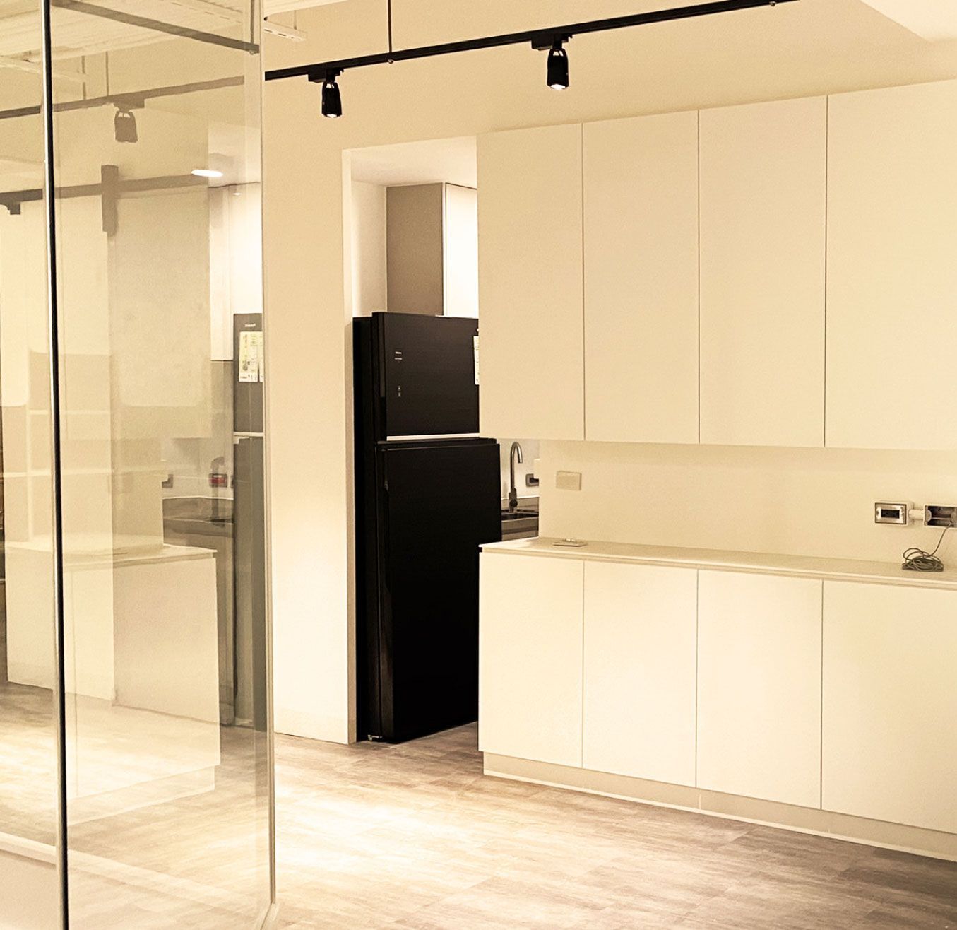 電腦生成的帶有廚房和餐廳的客廳圖像。